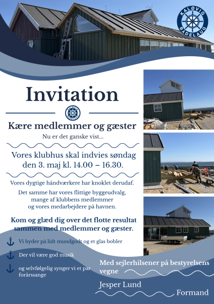 Indvielse af vores nye klubhus Aktivitetsudvalget, Begivenheder, Bestyrelse, Fiskerne, Fiskerne, Jolleafdelingen, Kajak, Sejlads, Skolesejlads, Vinterbader, Vinterbadning - 03. maj 2026 kl. 14:00